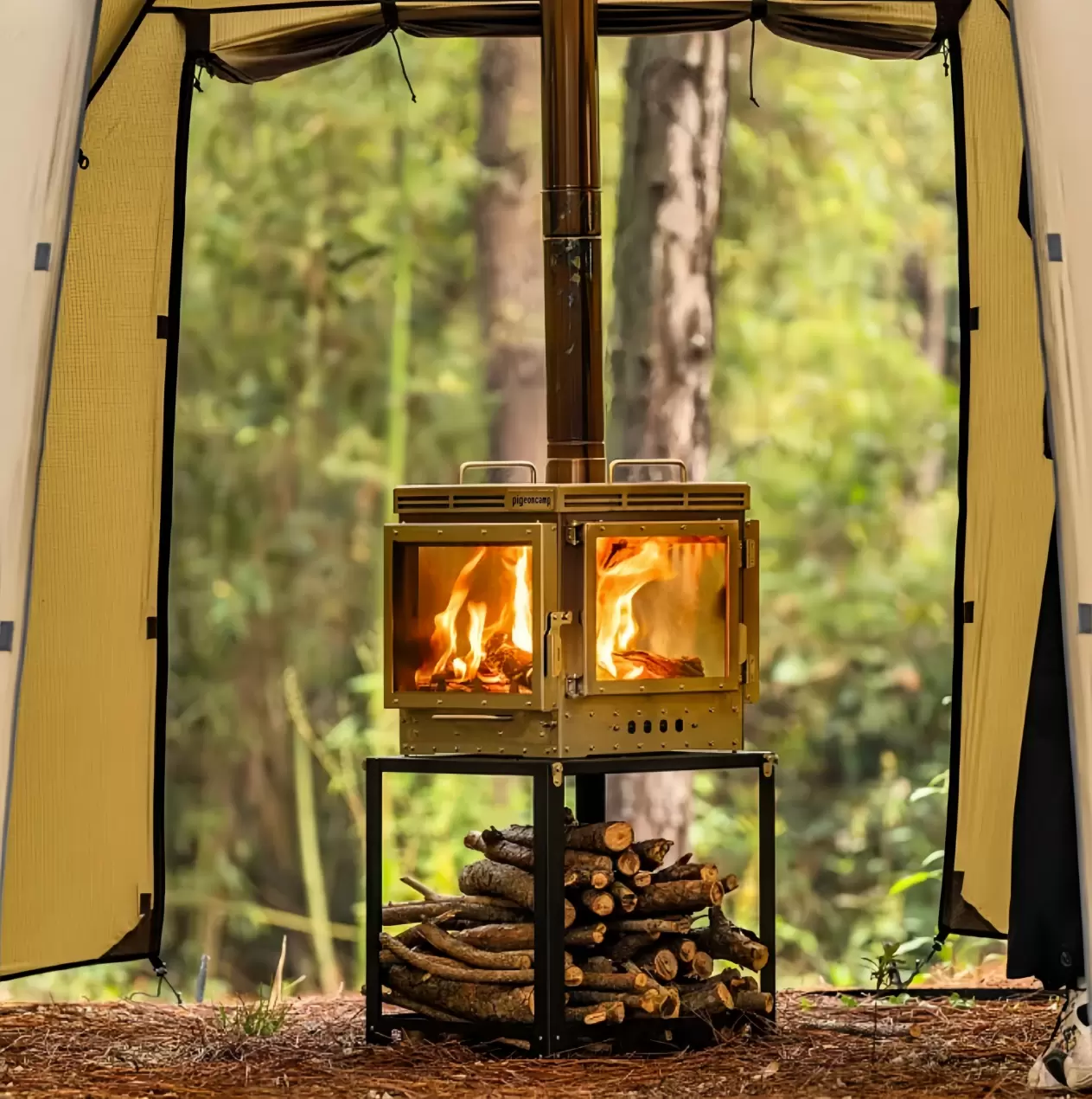 Vidro resistente a altas temperaturas de 6 mm em todos os lados + porta de visualização de incêndio com céu estrelado na parte superior aberta